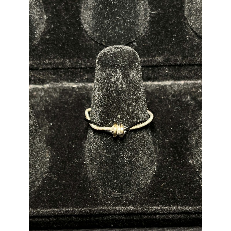 Bague fabriquée à la main avec des chutes de cordes de guitares que je récupère quand je monte les cordes pour mes clients.