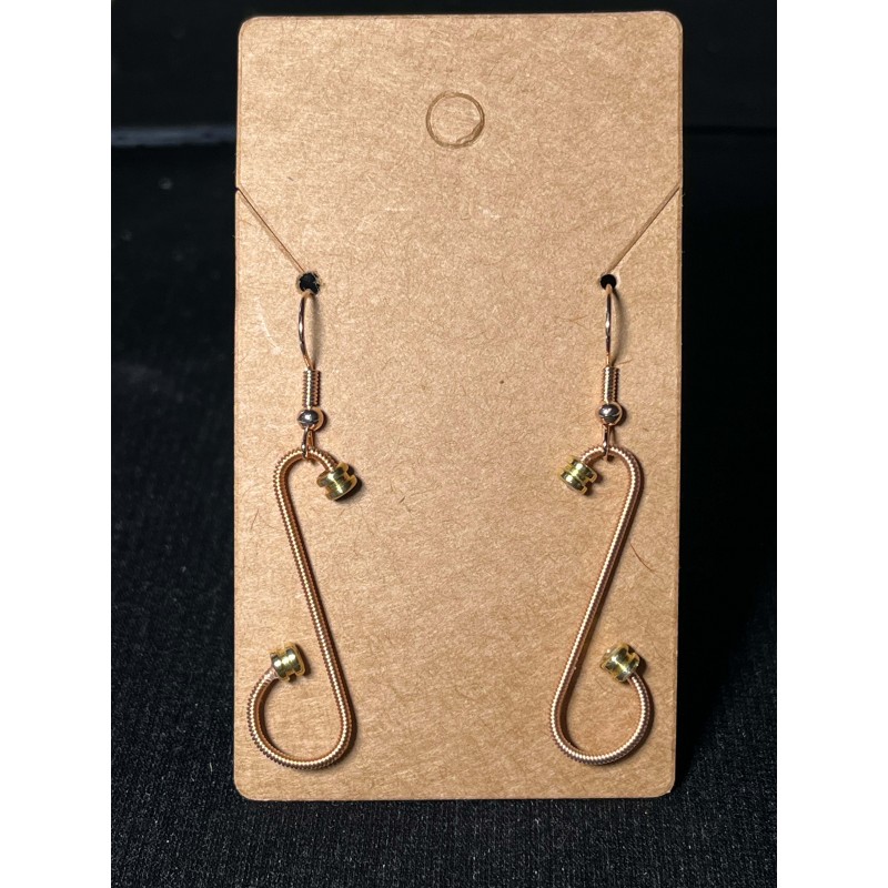 Boucles d'oreilles fabriquées à la main avec des chutes de cordes de guitares que je récupère quand je monte les cordes pour mes clients.